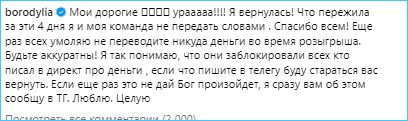 Теперь Ксения Бородина не рекомендует участвовать в таких розыгрышах, тем более, неизвестно, получат ли победители обещанные призы, как это случилось с Яной Тырлышкиной, а до неё с Либерж Кпадону на телепроекте Дом 2.