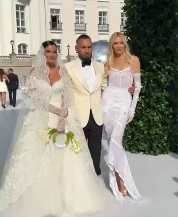 Николай Сердюков на свадьбе обнимал других женщин, Ксении Бородиной пришлось объяснять это странное явление - невесту жених не обнимает, а её подруг держит за талию.