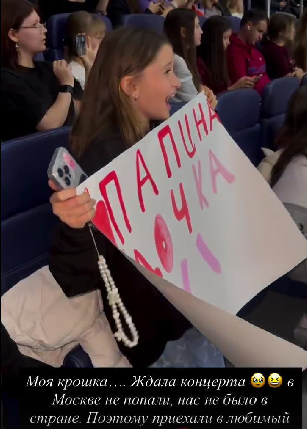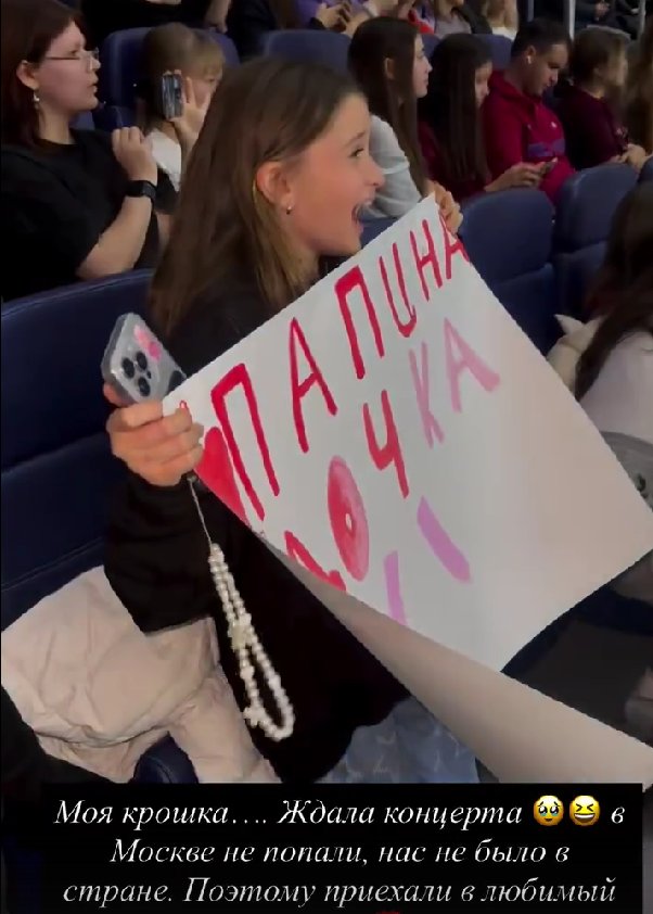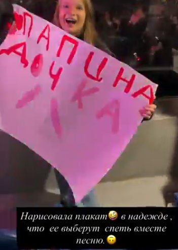 Теона нарисовала плакат и надеялась, что певец её заметит, но на стадионе собралось 64 тысячи поклонников Крида и дочку Бородиной не увидели. И не её одну.