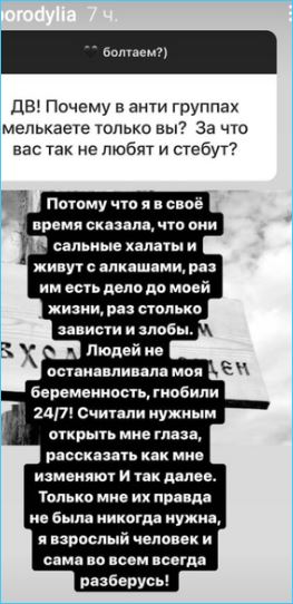 Находит время и желание Ксения устраивать перепалки со своими подписчиками или с бывшими участницами Дома 2, такими как Виктория Боня. Поэтому и призналась Бородина в микроблоге, что знает, за что её троллят антифанаты Дома 2, вспоминая дела давно прошедших дней.