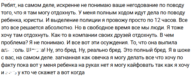 Зрители дома 2 не верят Ксении, потому что она опубликовала несколько видео с отдыха со своим парнем Алексеем и в них он предстал перед ними в нетрезвом состоянии. На это Ксения ответила, что позволяет себе расслабиться, пока ребёнка нет рядом, а потом всё изменится. Верим?