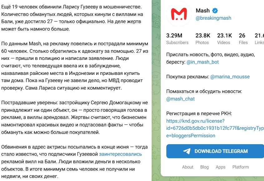 На данный момент в правоохранительные органы обратилось 27 человек, но по итогу разбирательств потерпевших может оказаться больше. Часть из них поверили рекламе, появившуюся на странице Гузеевой, поэтому сделку с бизнесменом Сергеем Домогацким оформили сделку без всяких сомнений. Уже сейчас пострадавшие уверены, Сергей не является владельцем объектов, демонстрируемых им в социальных сетях.
