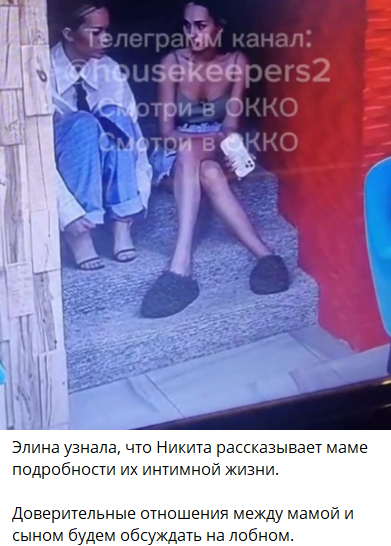 По словам Яны Фиткевич, Рахимова весь день предъявляла Гуранде претензии, потому что он рассказывал своей маме про интим, оправдывался, так как в эфирах Дома 2 эту тему активно обговаривали все участники. Элина считает, что такие темы в разговоре с родителями не поднимаются, Никита не понимает, в чем проблема, ведь мама Рахимовой находится на Поляне и активно участвует в обсуждениях. Чем его мама хуже?
