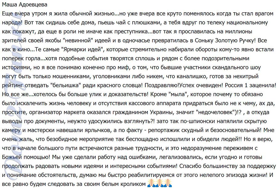 Мария Адоевцева. Развернутое письмо всем завистникам. Эти и другие последние новости и слухи дома 2 от сайтов: колючка, контрастный, гестигра, дом 2 тв и прочих фан сообществ читайте на страницах шлока.