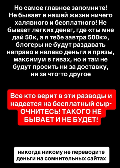 Олеся Кулик, Татьяна Мусульбес и другие друзья Ирины начали публиковать посты с предупреждением, но было поздно - наивные пользователи сети всё-таки нашлись. Теперь они будут требовать у Ирины вернуть переведенные средства.
