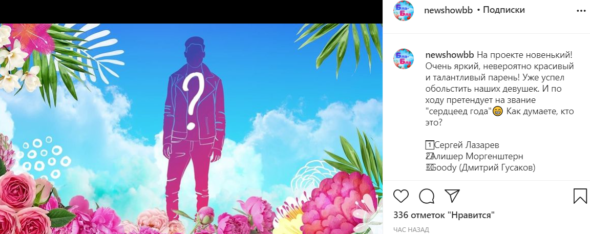 Гусаков теперь претендует на звание сердцеед года, если верить редакторам, опубликовавшим забавный пост, предлагая поклонникам реалити-шоу угадать, кто тот красавчик, который затмит всех парней на Поляне: Сергей Лазарев, Алишер Моргенштерн или Дима Гусаков. Ответ очевиден? Хотя на Лазарева многие хотели бы посмотреть, кого бы он выбрал для построения отношений?