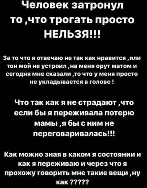 Обиженная на Свет-Амура Ефременкова поделилась с подписчиками переживаниями последних дней. Она пыталась уйти из дома, но не смогла попасть в квартиру мамы, уехать куда-то с двумя детьми на руках Юлия не может, ей постоянно нужна помощь, а рядом нет близкого человека.