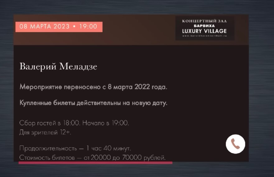 Так стало известно о выступлениях Меладзе в Монако, Санкт-Петербурге, а также о его будущем выступлении в концертном зале в Барвихе, запланированном на 8 марта 2023 года. Стоимость билетов на концерт артиста варьируется от 20 до 70 тысяч рублей. "Так просто можно: взял - уехал, взял - вернулся", - удивляется Никита Сергеевич.