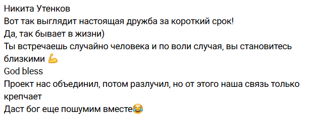 Бывший участник Дома 2 Никита Утенков поддерживает Стёпу Карпова, который решил остаться в Москве. Недавно Никита приезжал в гости к Степану, но в периметр его не пустили, и парни всю ночь ездили в поисках приключений по столице.
