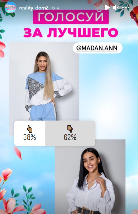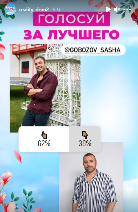 Опрос проводится в течение недели, участников поделили на пары и уже видны первые результаты. К примеру, Анастасия Роинашвили нравится телеаудитории меньше, чем Лилия Емельянова, а Глеб Жемчугов сильно проигрывает Саймону Марданшину. Как и Алексей Адеев Александру Гобозову.