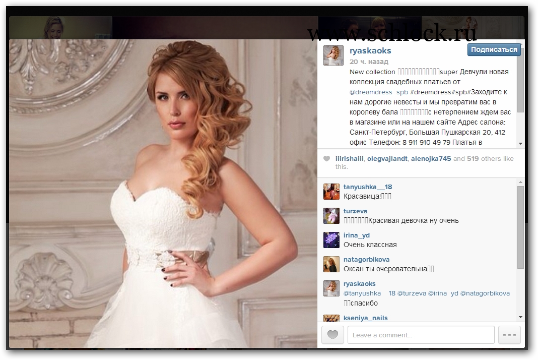 Оксана Ряска в инстаграм 10.05.14. Свадебные платья