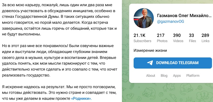 Певцу не пришлось по душе переворачивание его слов, сказанных в ходе присутствия на круглом столе в Госдуме.