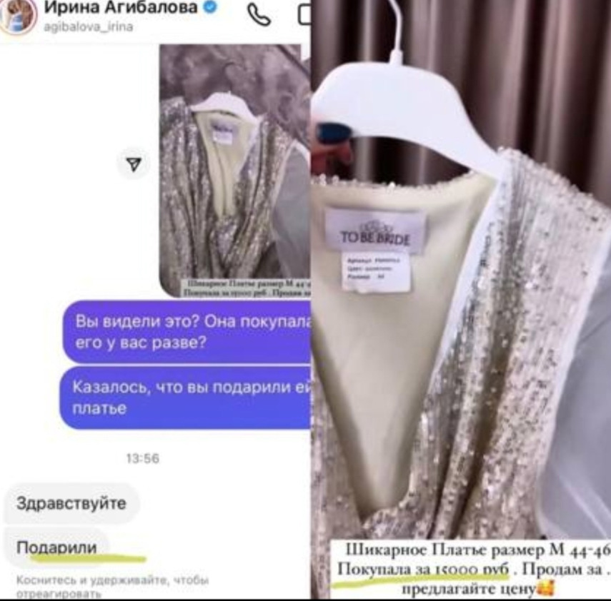 Одну из предложенных к покупке вещей зрители Дома 2 узнали и тут же написали другой бывшей участнице скандального реалити-шоу Ирине Агибаловой. Дело в том, что Рапунцель продает коктейльное платье, утверждая, что купила его за 15 тысяч рублей, а зрители помнят, что Агибалова подарила эту вещь Ольге, что подтвердила Ирина Александровна.