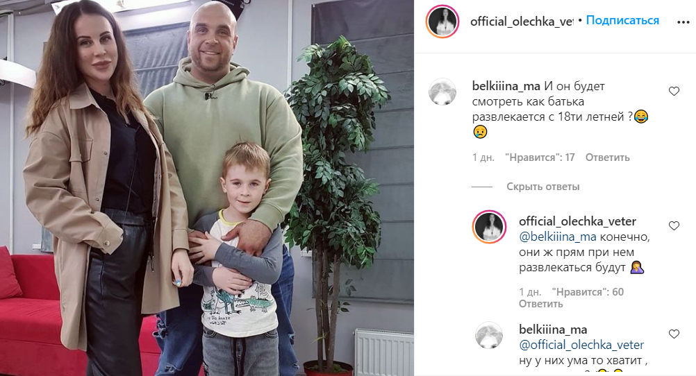 На майские каникулы к Глебу Жемчугову приехал в гости его сын Миша, им выделили отдельный дом, чтобы мальчику было комфортно на Поляне и он мог провести время с папой, а не в кругу других участников. Подписчицы бывшей супруги Глеба начали возмущаться, что Оля отправила ребенка на Дом 2, где под камерами Клубничка развлекается с Настей Роинашвили. Ребенку такое видеть не нужно - критикуют поступок Ольги зрители реалити-шоу.
