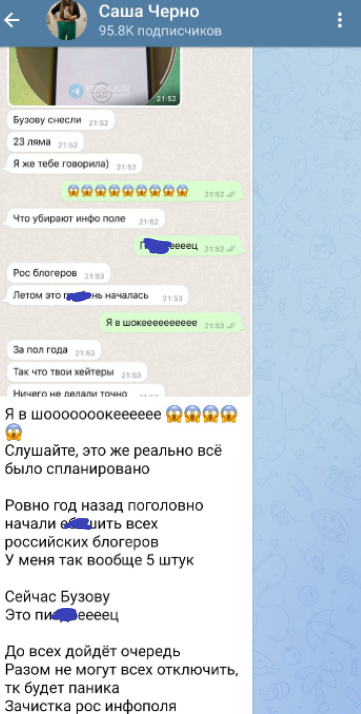 На данный момент при попытке зайти на страницу Бузовой поисковик выдает надпись: пользователь не найден, сервис показывает пустую страницу Оли, что огорчает её до глубины души, ведь она вложила немало сил и денег в раскрутку своей страницы. Несмотря на то, что Бузова попыталась дистанцироваться от политики, её всё равно лишили блога. Это вызвало у домовских блогеров, таких как Саша Черно, стойкое ощущение, что они являются важной частью инфополя.