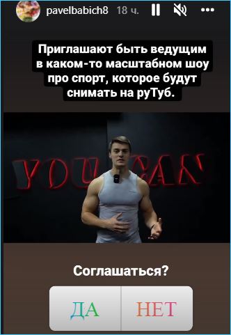 У Павла Бабича зато появилась радостная новость, которой он поспешил поделиться в социальных сетях. Его пригласили ведущим на масштабное спортивное шоу, которое собираются снимать на площадке Рутуб.