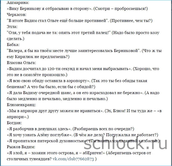 «Вас связывали только стенки проекта». (Валеру - стенки проекта, а Дианку - стенки сосуда.)