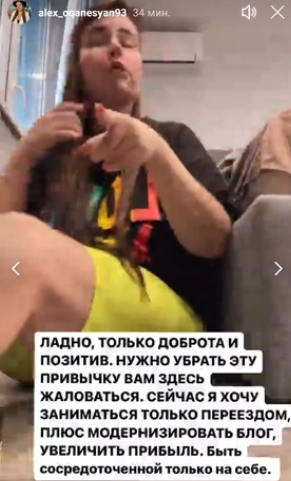 Устав жаловаться на сына, Александра Черно задела ещё и тему отношений с супругом, которого она считает ленивым, не умеющим вести себя в обществе провокатором, мужчиной в кавычках и человеком, который её использует как грушу для битья. Саша Черно намекает Оганесяну на развод, она сетует, что нужно было ей родиться мужчиной, потому что все проблемы семьи она решает сама.