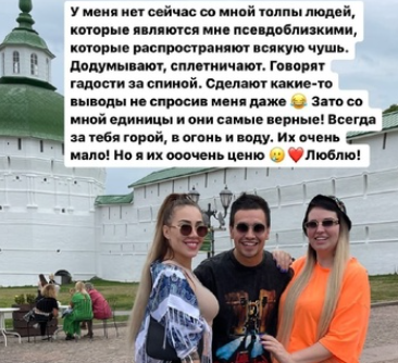 Не потому ли в своем личном блоге Черно опубликовала довольно понятный пост с намеком, что у неё есть близкие люди, а есть псевдоблизкие. Наверное, псевдоблизкие, это те, чье общество ей теперь недоступно?