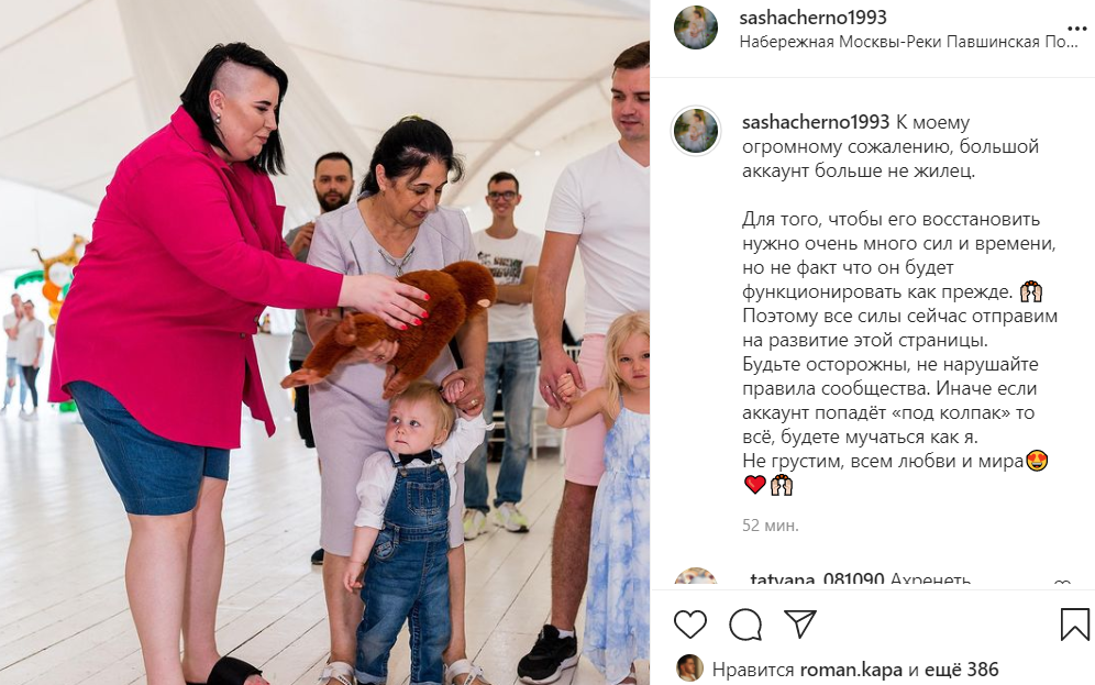 - Александре Черно после блокировки её основных аккаунтов в Инстаграм пришлось заводить новую страницу, где она приветствует только позитивно настроенных граждан. Саша уверена, что общими силами она с помощью своих поклонников сможет набрать 5 миллионов подписчиков.