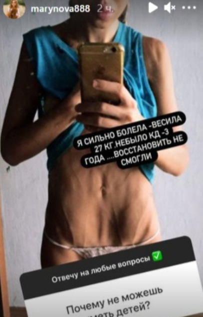 - Бывшая участница проекта Дом 2 Мария Кохно призналась своим подписчикам, что бесплодна, у неё были серьезные проблемы со здоровьем во время анорексии и теперь Маша не сможет родить ребенка.