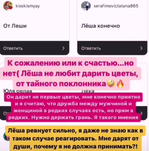 - Бывшая участница Дома 2 Татьяна Репина снова в ссоре с Алексеем Безусом. Лёша пропагандирует свободные отношения и гостевой брак, однако запрещает своей гражданской жене принимать цветы от поклонников.