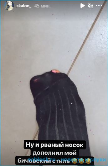 - Екатерина Скалон пожаловалась на неприветливых продавцов в торговом центре, которые не хотели ей предлагать и показывать товар, потому что Катя была простенько одета. В подтверждение своего "бомжацкого" вида Катя в сторис продемонстрировала мужские носки с дыркой, которые ей приходится носить.