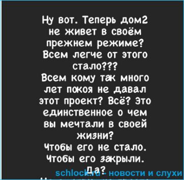 - Режиссер проекта Дом 2 Анна Позднякова считает, что исполнилась мечта антифанатов, по вине которых закрыли Дом 2. О том, что два последних года щоу было убыточным, заявил новый глава ТНТ официально. Не те причины закрытия своего продукта ищут сотрудники?