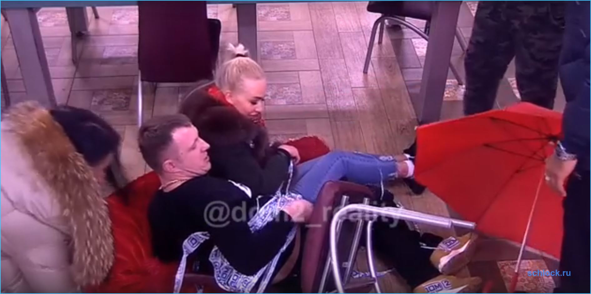 Илью примотали к стулу вместе с его новой пассией Мариной Джураевой и повалили на пол прямо посреди общей кухни. А затем, чтобы создать парочке романтическую обстановку и атмосферу, начали прямо возле них на полу расставлять фрукты, воду, искусственные цветы и прочую «неотъемлемую атрибутику». Даже о зонтике побеспокоились…