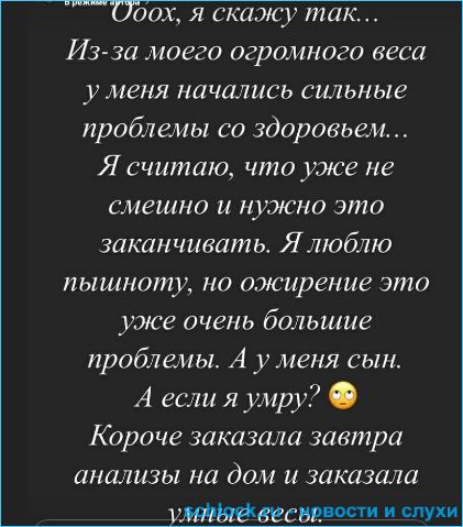 Помогут ли в её случае умные весы, сказать сложно, но, для раскрутки своего возвращенного аккаунта и продвижения запасного, тема похудения опять вытащена Черно из запасников, чтобы внимание к её проблемам привлечь.