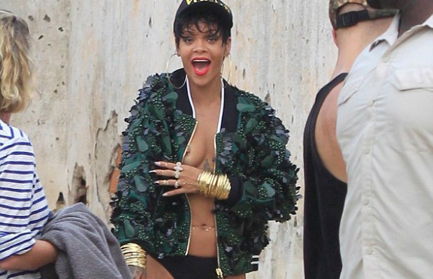 Доказательством вышеозвученного стала фотосессия Рианны для бразильского издания «Vogue», которая проходила на острове Angra dos Reis. И хоть грудь певицы и была прикрыта специальными защитными стикини, места для фантазий практически ни у кого не осталось.