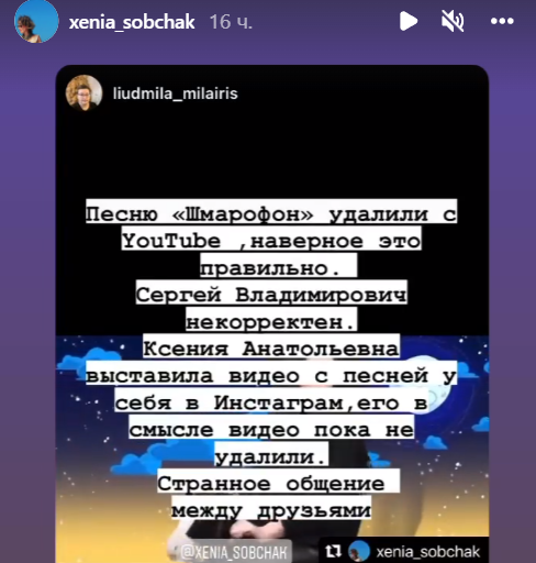 Что касается войны бывших друзей, то она закончилась малой победой Ксении, ведь песню Шнурова на YouTube удалили, о чем Собчак сообщила своим поклонникам. Дотянутся ли разборки до Первого канала, на котором часто появляется Калганов со своим мнением, не туда ли он "навострил лыжи"?