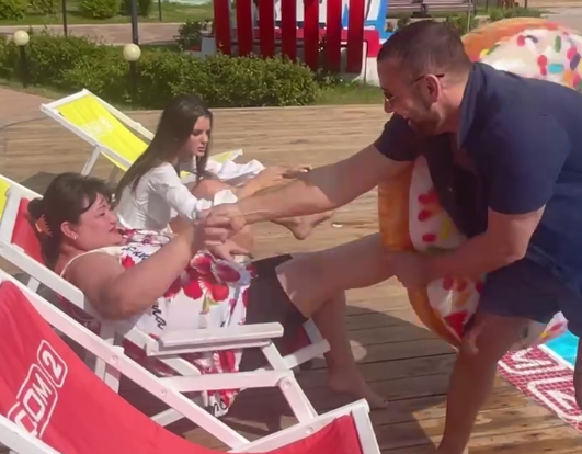 Сами посудите, участнику Дома 2 через несколько лет стукнет 50, а он пытается сбросить в бассейн практически свою тёщу. Ну или чужую будущую тёщу, что тоже достаточно некрасиво. Не для этого ли Адеев постоянно ходит в спортзал?