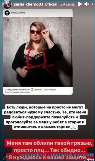 Потрясающая Саша Черно - вещают введенные в заблуждение инстаграмщики. Но зрители дома 2 быстро ввели в курс дела спонсоров конкурса, на странице премии написали сотни комментариев против участия Черно и она была вынуждена просить помощи у своих фанатов.