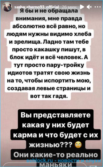Хейтеров она называет ботами, которые придумывают про нее небылицы, якобы Саша издевается над животными. Хотя она животным помогает и даже перечисляет деньги на больных детей.