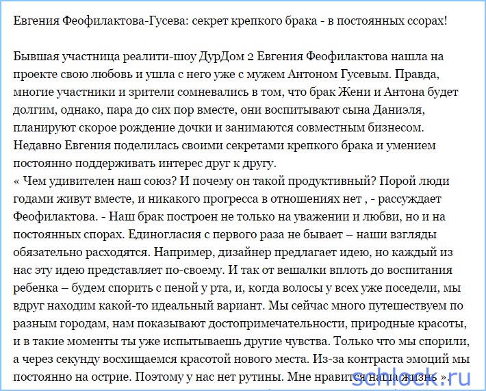 Секрет брака Гусевых - в постоянных ссорах!