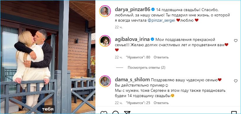 Накануне отметили 14 годовщину своей свадьбы Дарья и Сергей Пынзари, которые стали самой крепкой парой реалити-шоу Дом 2.
