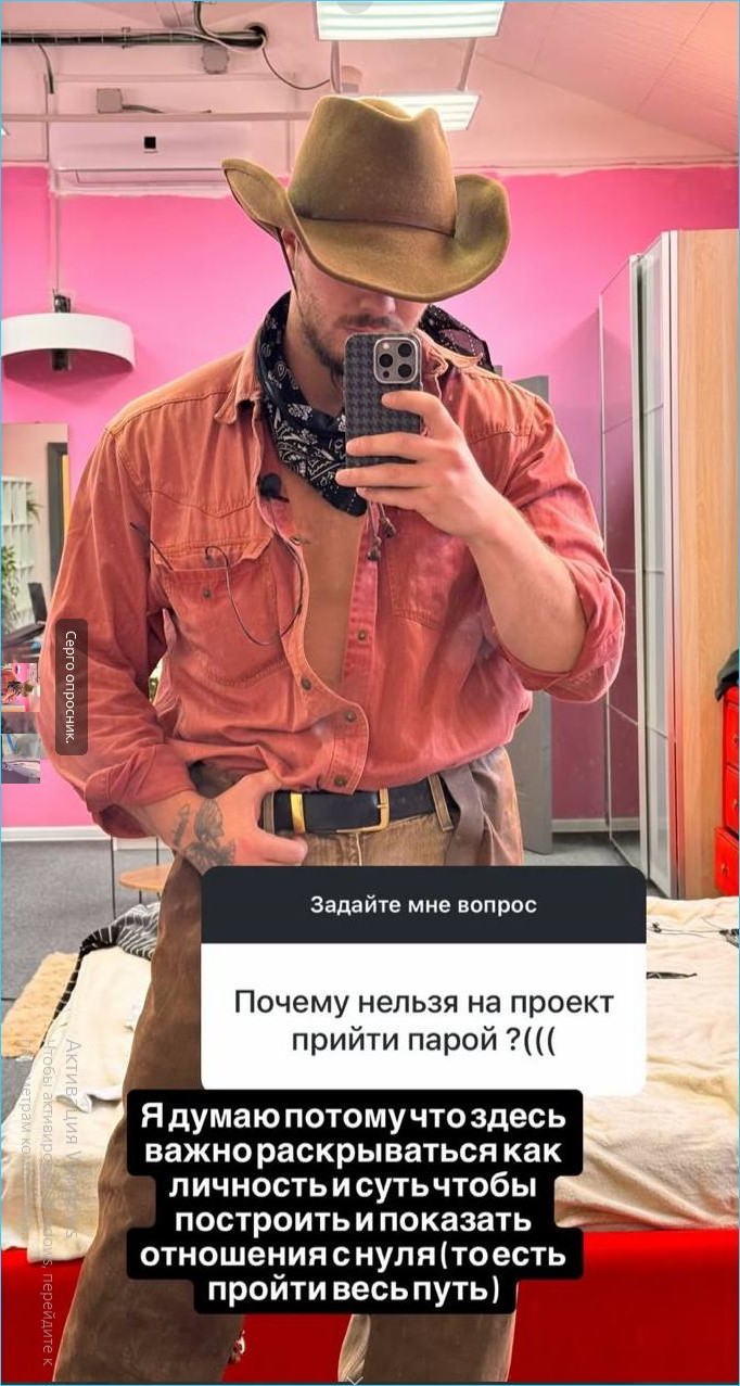Каверзный вопрос задали Сергею Хорошеву о том, почему на проект не приходят парами, ведь в его случае с Дорожкиной было сделано исключение. По утверждению Сергея, руководство предпочитает полный цикл зарождения и развития отношений под камерами, но с интересной предшествующей историей, как в его случае, может быть сделано исключение.