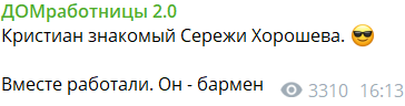Вы посмотрите только, какие женщины бывают коварные. Не успел парень зайти на проект, уже пишут в сети, что он не барменом работал в стриптиз-клубе, а выезжал по частным заявкам (Плохо кому-то скрасил досуг?). Но это лишь слухи, позже обсудим на шлоке, останется ли Кристиан на Поляне, учитывая, какая там конкуренция среди парней.