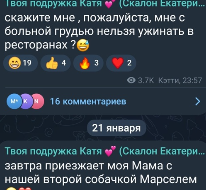 Екатерина Скалон готовится к шестой по счёту маммопластике и подозревает, что может остаться без груди, если её организм продолжит отторгать импланты. Бывшую участницу Дома 2 отправили из клиники домой за вещами и она воспользовалась моментом, чтобы посидеть пару часов в ресторане с подругами. Катерина многих участников позвала поговорить по душам, но своему парню не сообщила о событии.