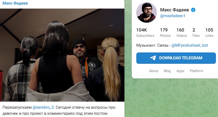 Уточняется, новое "SEREBRO" со старой группой будет связывать только наличие в составе девушек-солисток, в остальном - это будет другой проект с совершенно иной направленностью. Судя по всему, "новое" детище Фадеева будет представлять из себя нечто новое, отличающееся от творчества полюбившейся многим группы. Что касается состава, то в нём нет бывших участниц "Серебра".