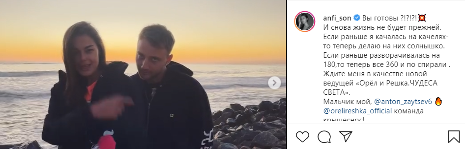 В этом, пятом по счёту, сезоне команда "Орла и решки" отправится в Грецию, Намибию, Италию, Киргизию и т.д. Как признаётся Анфиса, к некоторым моментам своего участия в нашумевшем шоу она была совершенно не готова. "Орёл и решка" - ядерная прививка, состоящая из восторга и шока. Это способно изменить мироощущение раз и навсегда.", - добавляет победительница 7-го сезона "Последний герой".