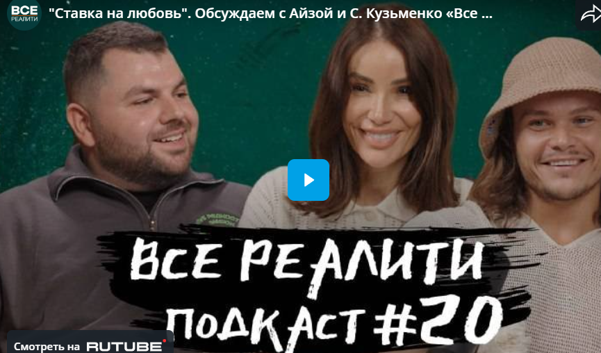 В новом выпуске подкаста «Все реалити» гостями стали Айза и ее жених Степан Кузьменко. Впервые откровенно поговорим обо всех скандалах в реалити, связанных с Айзой: от романа с Малафеевым до буллинга Кривцовой. В студии также обсудим, как Степан решился сделать предложение, и о том, как на самом деле складывались отношения с Верещагиными. Приятного просмотра видео на шлоке.