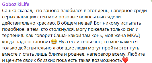 Светлана Гобозова переживает за мужа - бывшего участника Дома 2, которого заключили под стражу в зале суда и осудили по статье "Разбой" на полтора года лишения свободый. На данный момент адвокат Гобозова собирает документы для апелляции и обратился в суд, чтобы Александра выпустили под залог 1 млн рублей, о чём мы рассказывали на шлоке. Семья Гобозова, по слухам, уже собрала нужную сумму, в том числе, участвуя в ток-шоу.