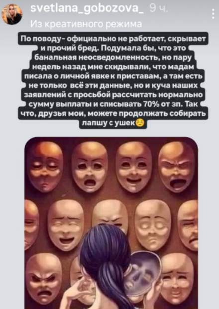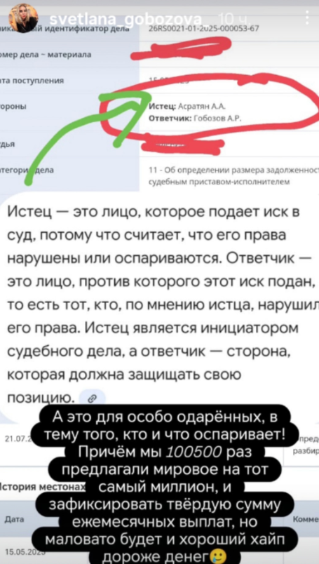Гобозова привела в доказательство своей и Сашиной правоты старое видео, в котором Алиана говорит, что Гобозов помогает ей материально, а также старые статьи про возможный третий брак Алианы и Александра. Был такой период, когда Алиана не показывала с кем она живет, и намекала, что выйдет за Гобозова замуж в третий раз. Мы эту ситуацию обсуждали на шлоке, Гобозов помог Алиане сделать видео с интригой, после чего Устиненко призналась, что живет с музыкантом. На тот момент Устиненко и Гобозов хорошо общались, Роберт гостил у отца и бабушки на каникулах, но хороший период был вычеркнут, как будто его и не было, а Алиана выбрала хайп.