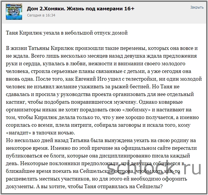 В жизни Татьяны Кирилюк произошли такие перемены, которых она вовсе и не ждала. Всего лишь несколько месяцев назад девушка ждала предложения руки и сердца, купалась в любви, нежности и внимании своего молодого человека, строила серьезные планы связанные с детьми, а уже сегодня она вновь одна.