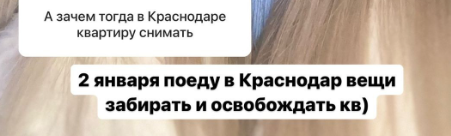 Репина забирает в январе 2024 года вещи, хранящиеся на съемной квартире в Краснодаре, а затем едет в Москву на Дом 2. Или на встречу с Безусом?