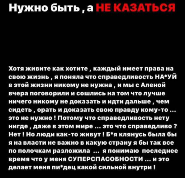 После разговора по душам с подругой Алёной Опенченко у Кристины Бухынбалтэ открылись суперспособности по управлению миром. Участница реалити-шоу Дом 2 почувствовала себя переполненной мудростью и чувственностью, ей захотелось то ли справедливости, то ли управлять страной, то ли добиться понимания и любви телезрителей.
