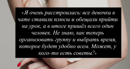 У Яны Тырлышкиной не получилось собрать подписчиц в танцевальной студии. Она выбрала место и время, узнала у девушек, когда они смогут прийти на занятие, девушки поставили отметки, соответственно, на аренду зала Яна потратила больше денег, но появилась только одна её подписчица.