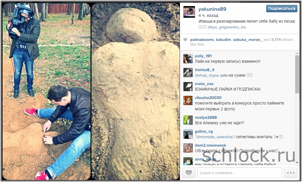 Рутам Калганов починил свой мотоцикл, Диана Игнатюк и Аня Кудимова продолжают дружить после проекта, Вася Тодерика и Тоня отлично провели пятничную ночь, а Саша Задойнов отправился на рыбалку. Илья Григоренко не унывает из-за того, что в отношениях с девушками он постоянно терпит неудачу и решает вопрос поставить ребром - слепить себе женщину из песка. Даша и Сергей Пынзарь вернулись на дом 2, а Андрей Черкасов показал чудесных розовых голубей. Эти и другие маленькие новости из жизни участников дома 2 вы можете узнать из сегодняшней подборки из инстаграм участников.